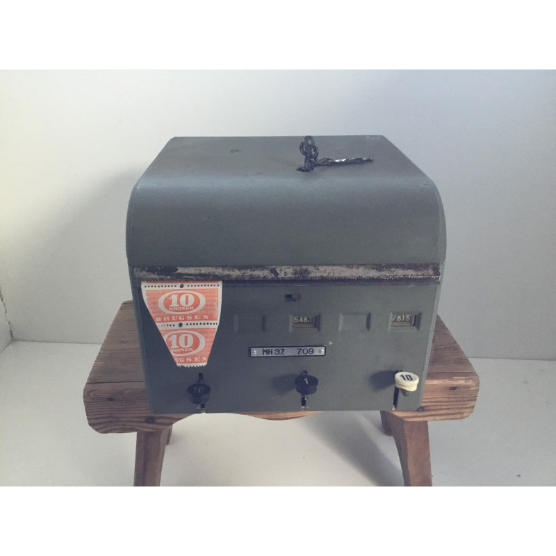 Ælder maskine fra Brugsen til rabatmærker 10 kr. rabat mærker medfølger. Der forekommer rust på maskinen. Der står MH3Z 709, National. Der medfølger 2 stk. nøgler.