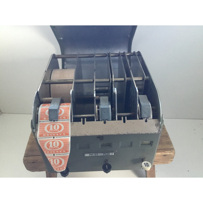 Ældre rabat mærke maskine fra Brugsen med 10 kr. rabat mærker
